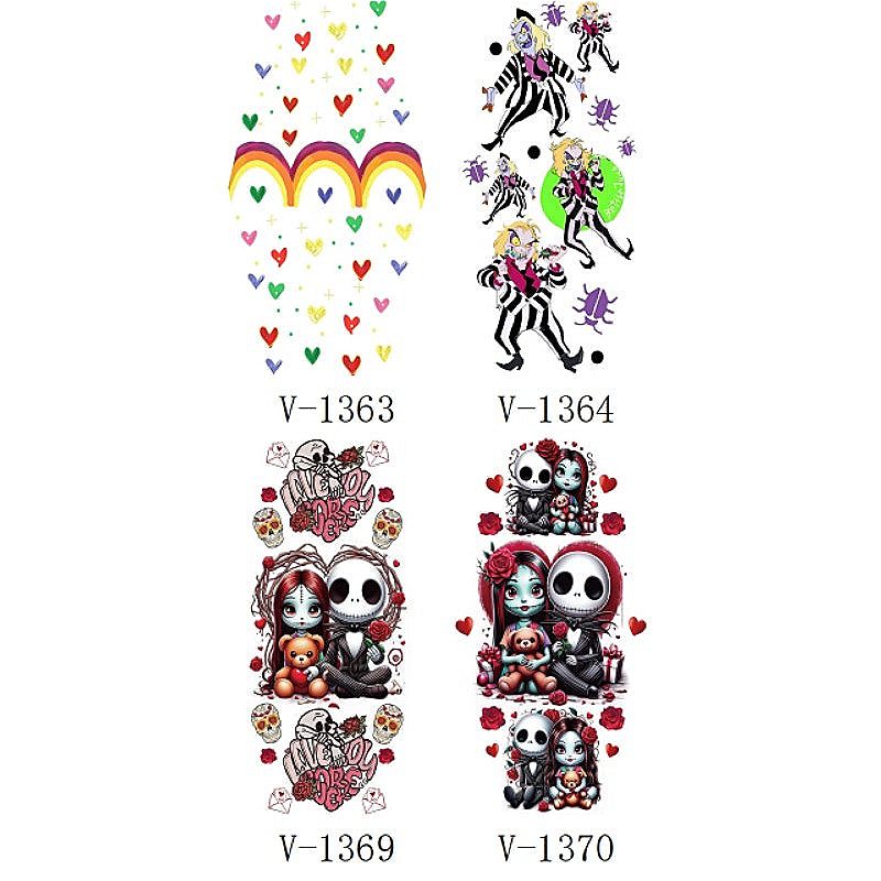 Wholesale 5pcs UV DTF Rainbow Skull Rose Keychain Sticker