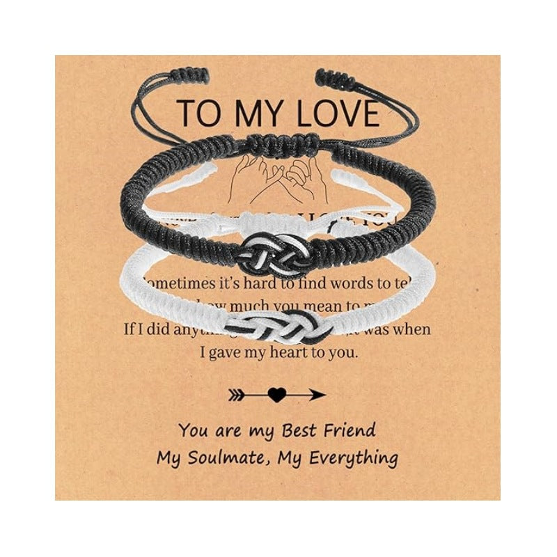 Wholesale Hand woven black and white Mobius ring adjustable bracelet