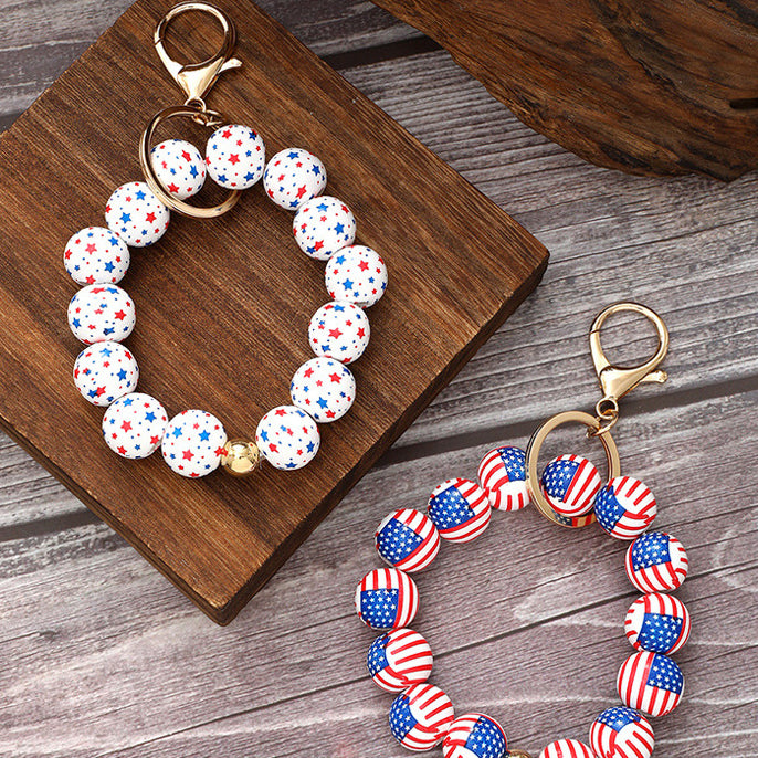 Wholesale American Independence Day Colorful Full Screen Star Bracelet Keychain