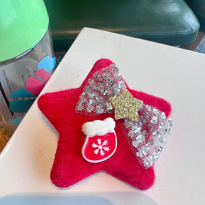 Wholesale Christmas Red Bear Bow Plush Hair Clip