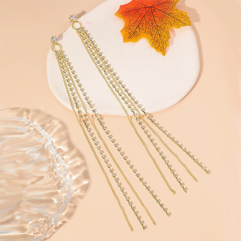 Wholesale Diamond Tassel Palace Style Long Geometric Earrings