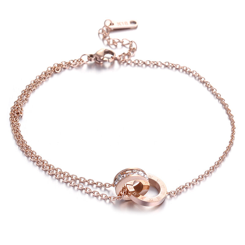 Wholesale Double Ring Roman Script 18K Gold Bracelet