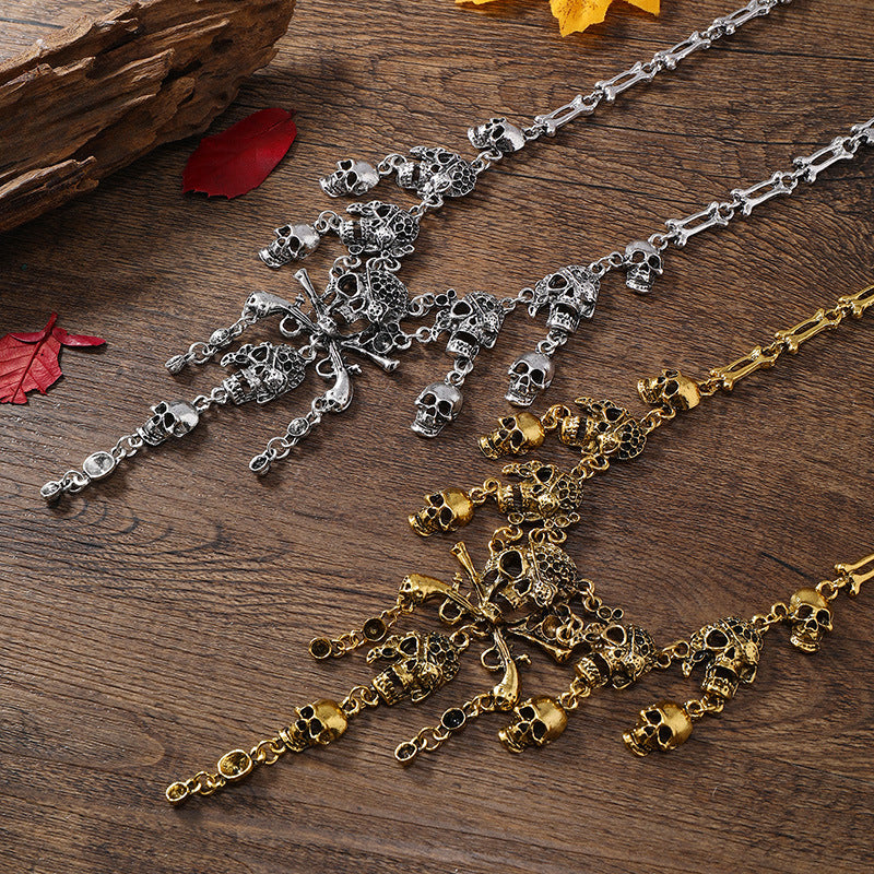 Wholesale Halloween Dark Retro Metal Tassel Skull Short Necklace
