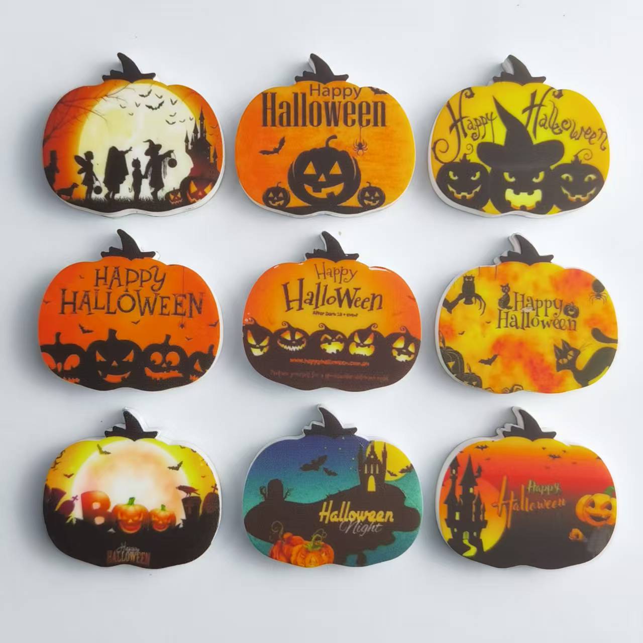 Wholesale Halloween Pumpkin Theme 30pcs 2D Printed Silicone Beads
