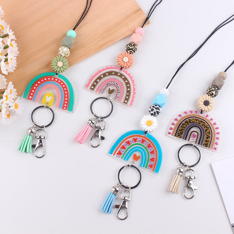 Wholesale New Cartoon Daisy Silicone Beaded Lanyard Certificate Necklace DIY acrylic Keychain Certificate Lanyard