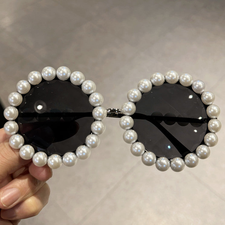 Wholesale Pearl Metal Round Frame Wedding Catwalk Sunglasses