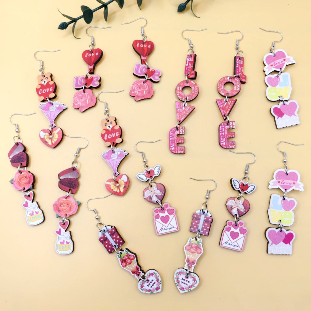 Wholesale Romantic Valentine's Day Earrings Pink Love Rose LOVE Cupid Bear Simple Distinctive Earrings