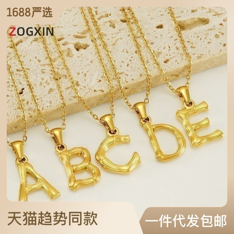 Wholesale Stainless Steel Plated 18K Bamboo Letter Necklace