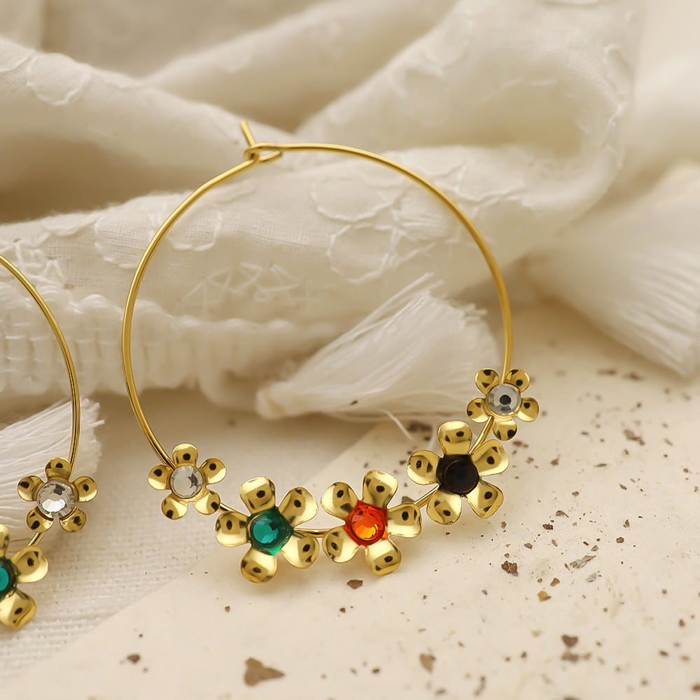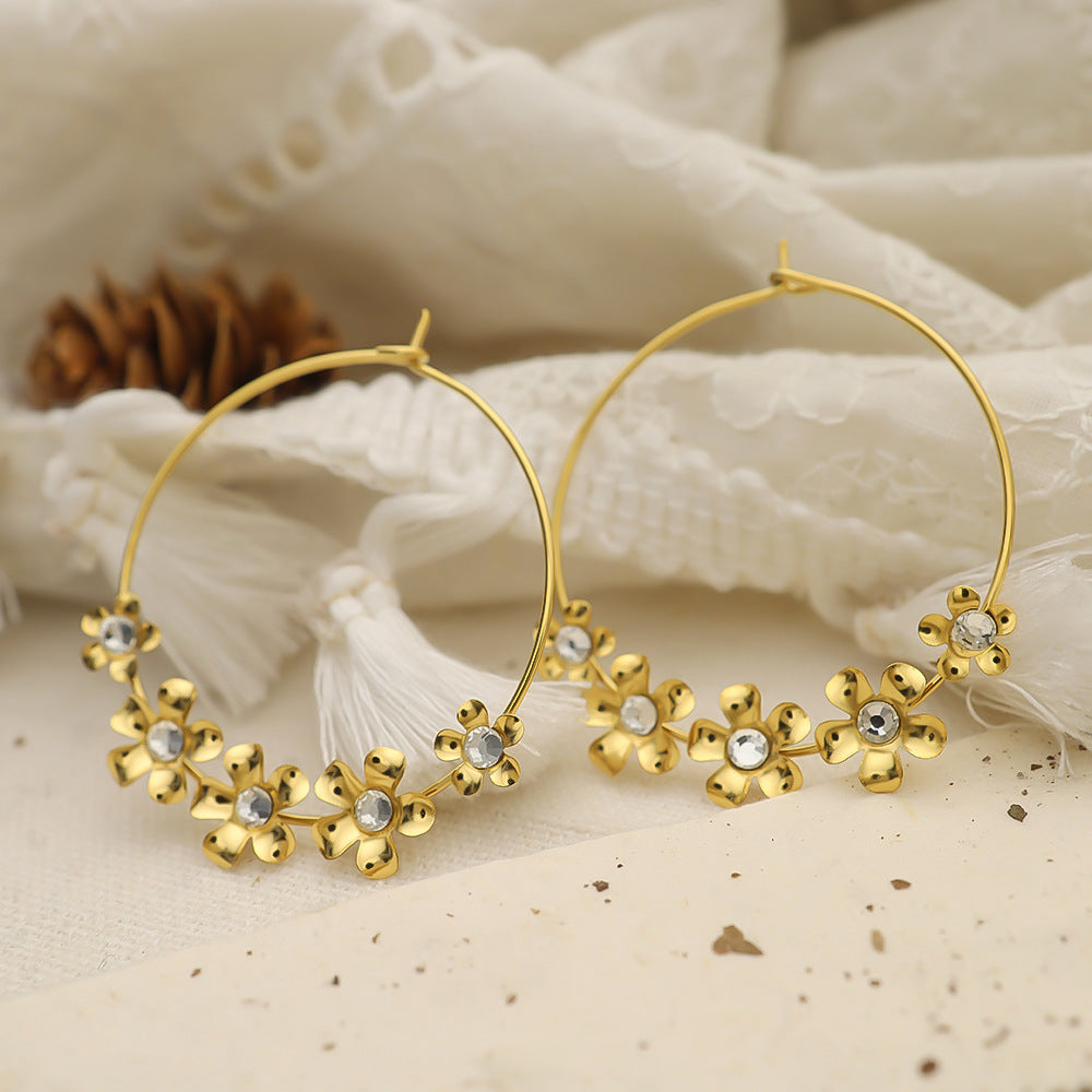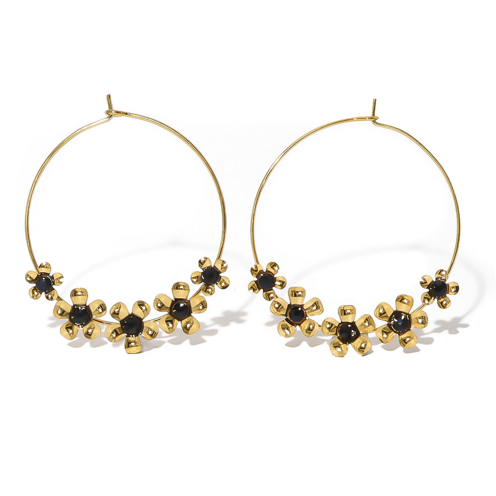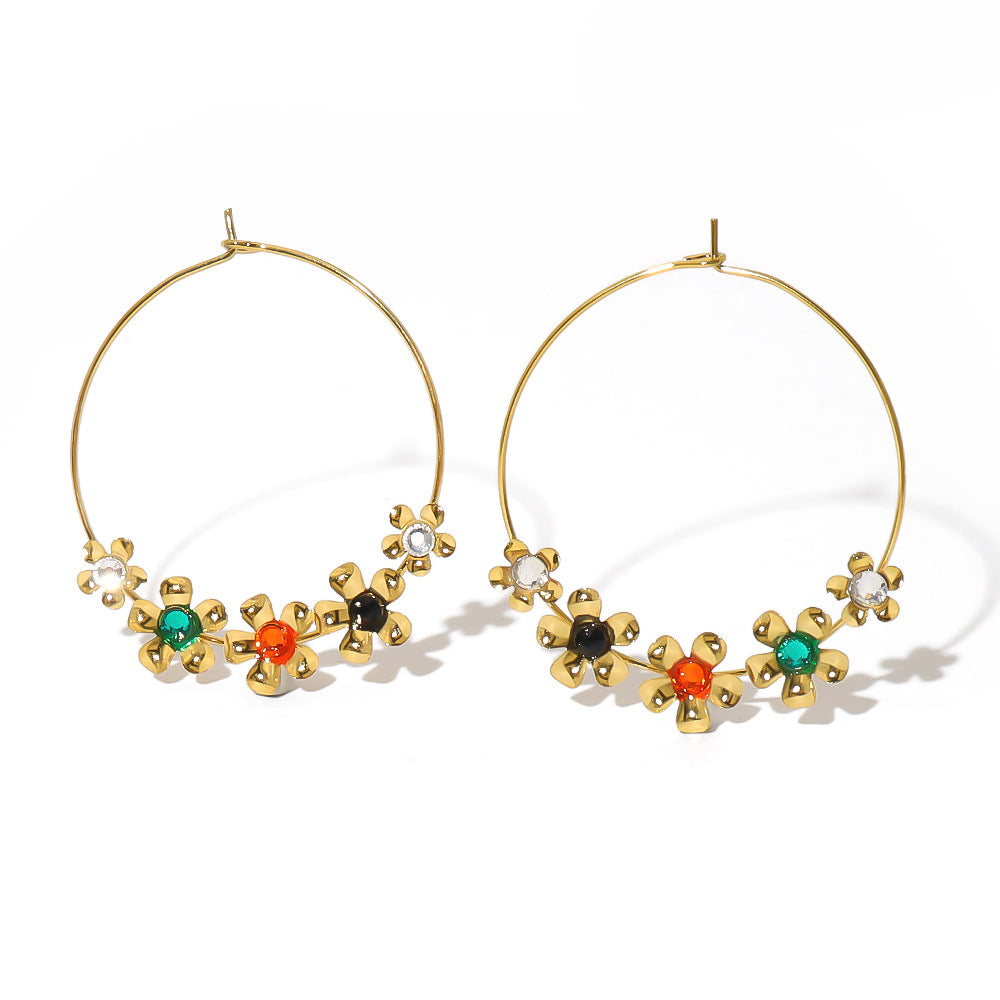 Wholesale Vintage Small Flower Stainless Steel Gold-plated Earrings