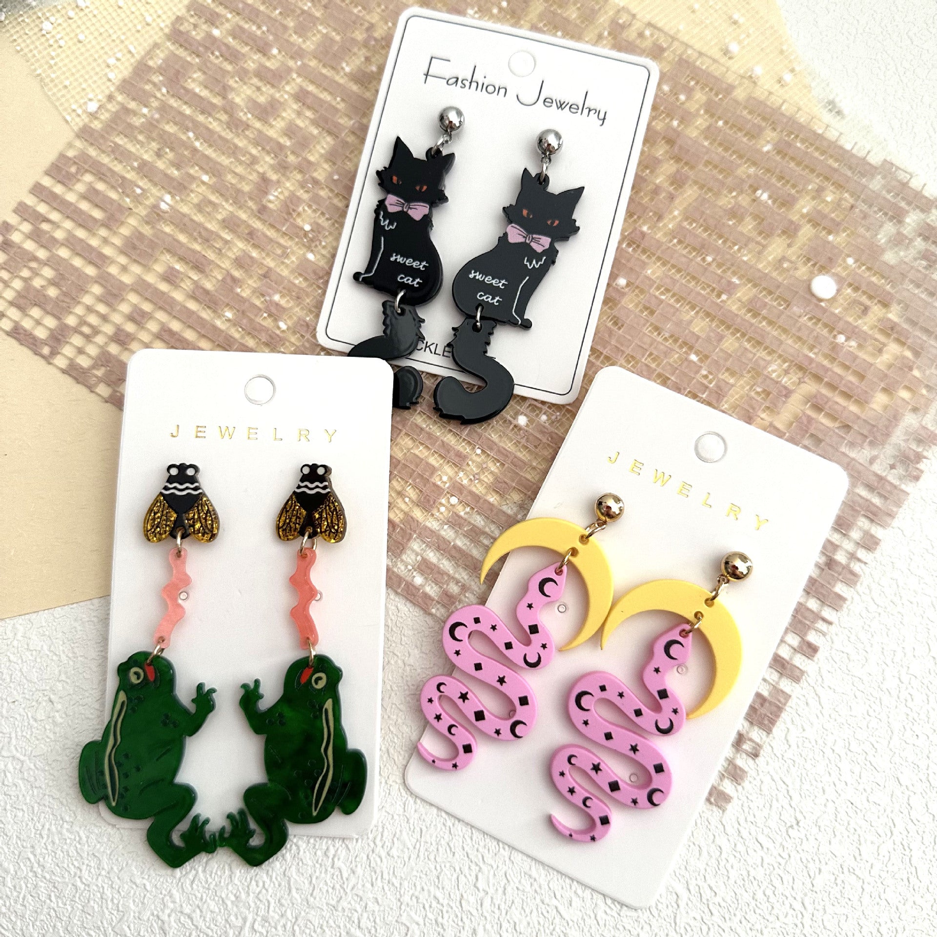 Wholesale Acrylic Moon Snake Animal Bee Frog Cat Long Earrings