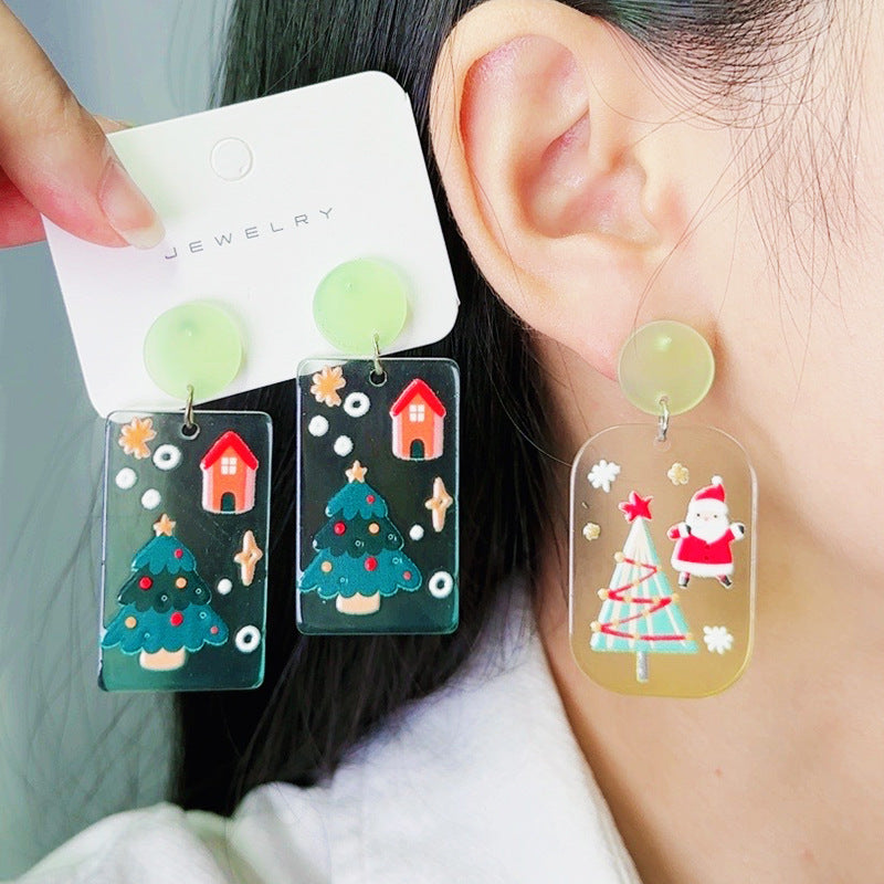 Wholesale Christmas Santa Claus Snowman House Acrylic Earrings