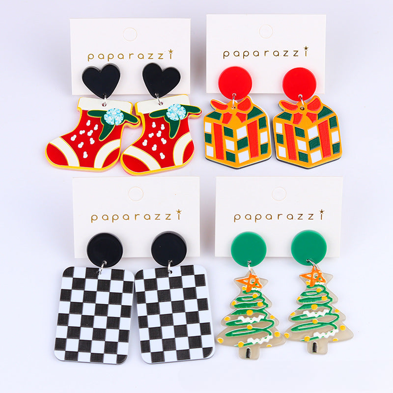 Wholesale Christmas Tree Socks Acrylic Earrings