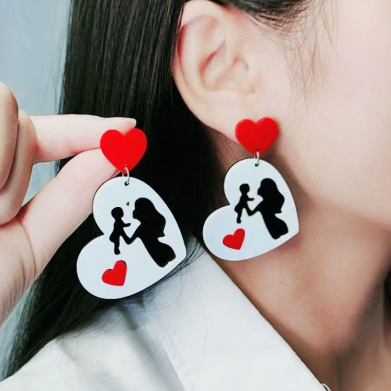 Wholesale Mother's Day Acrylic Love Double Layer Earrings