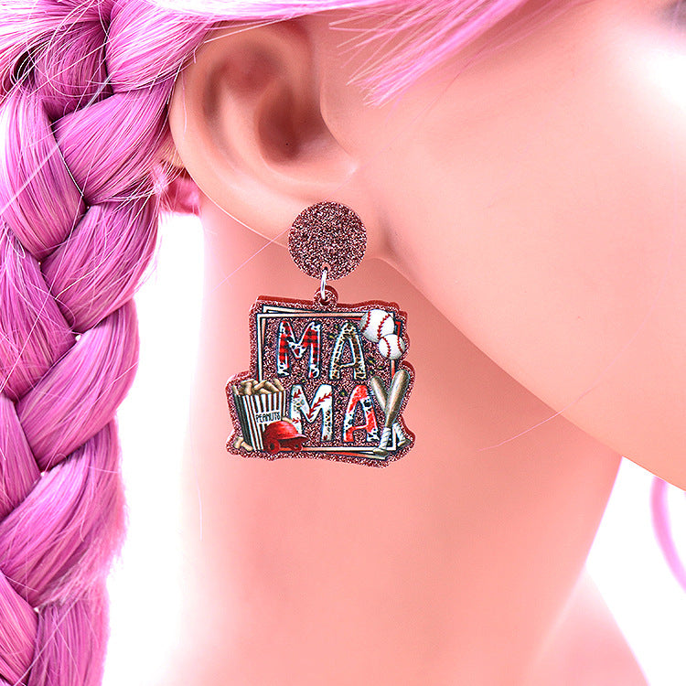 Wholesale Mother's Day Baseball Mama Acrylic Earrings