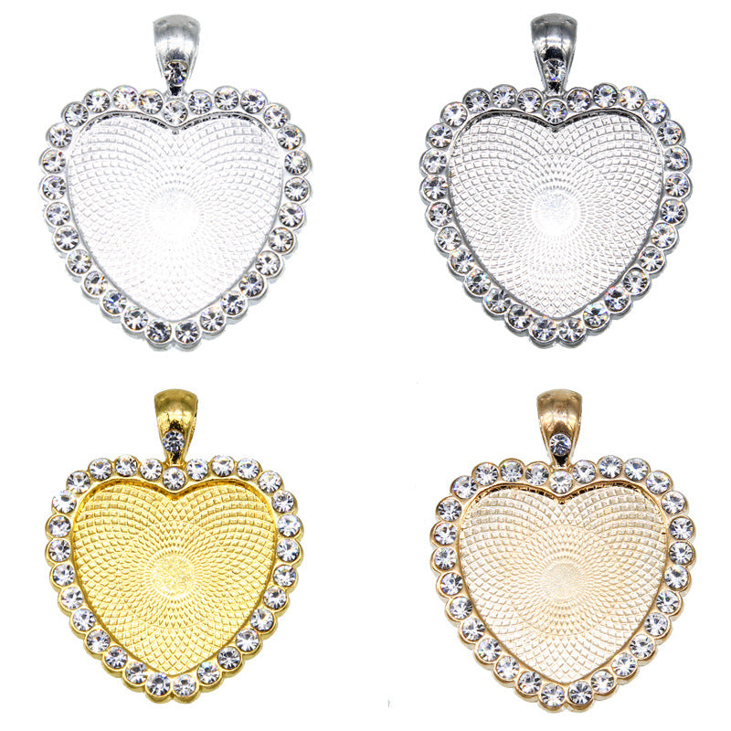 Wholesale 100PCS/PACK Alloy 25mm Peach Heart Diamond Time Gemstone Base