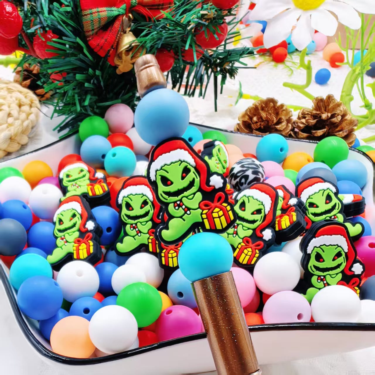 Wholesale 10pcs/pack 2D Christmas Cartoon Focus Beads DIY Silicone Beads$5.30 Free Shipping
