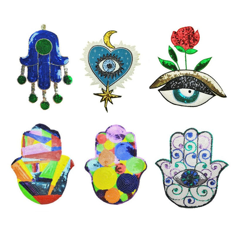 Wholesale 10pcs Clothing Accessories Bead Embroidery Palm Glitter Embroidery Denim Fabric Patch FS