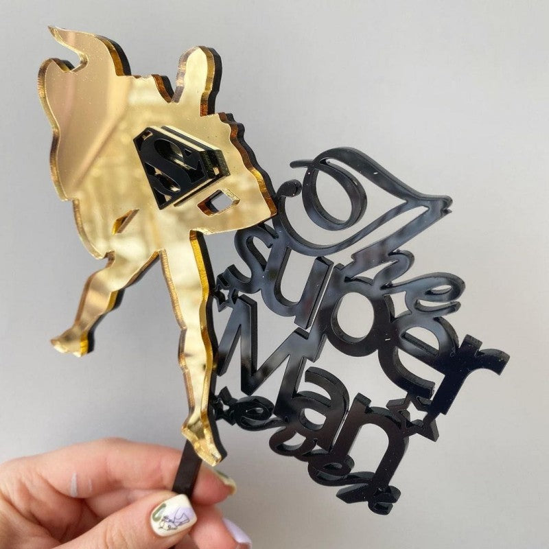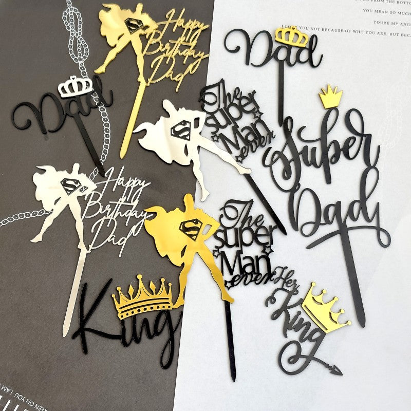 Wholesale 10PCS/PACK Father's Day Superman Dad Acrylic Cake Insert Decoration