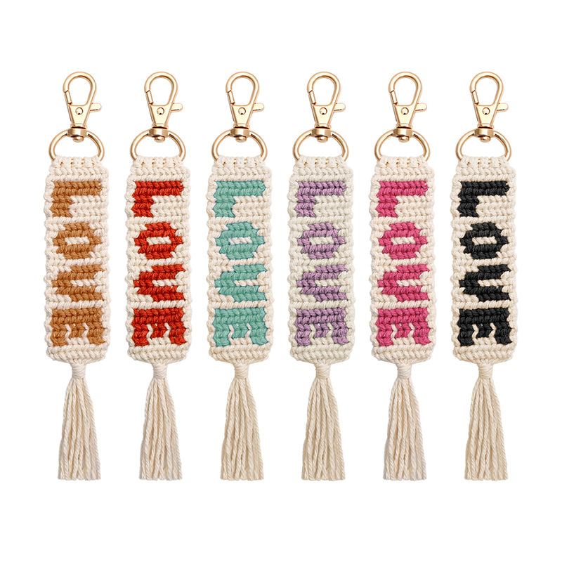 Wholesale Boho Braided Tassel Hand Made Alphabet Keychain Valentine's Day OLY-KC-JM004