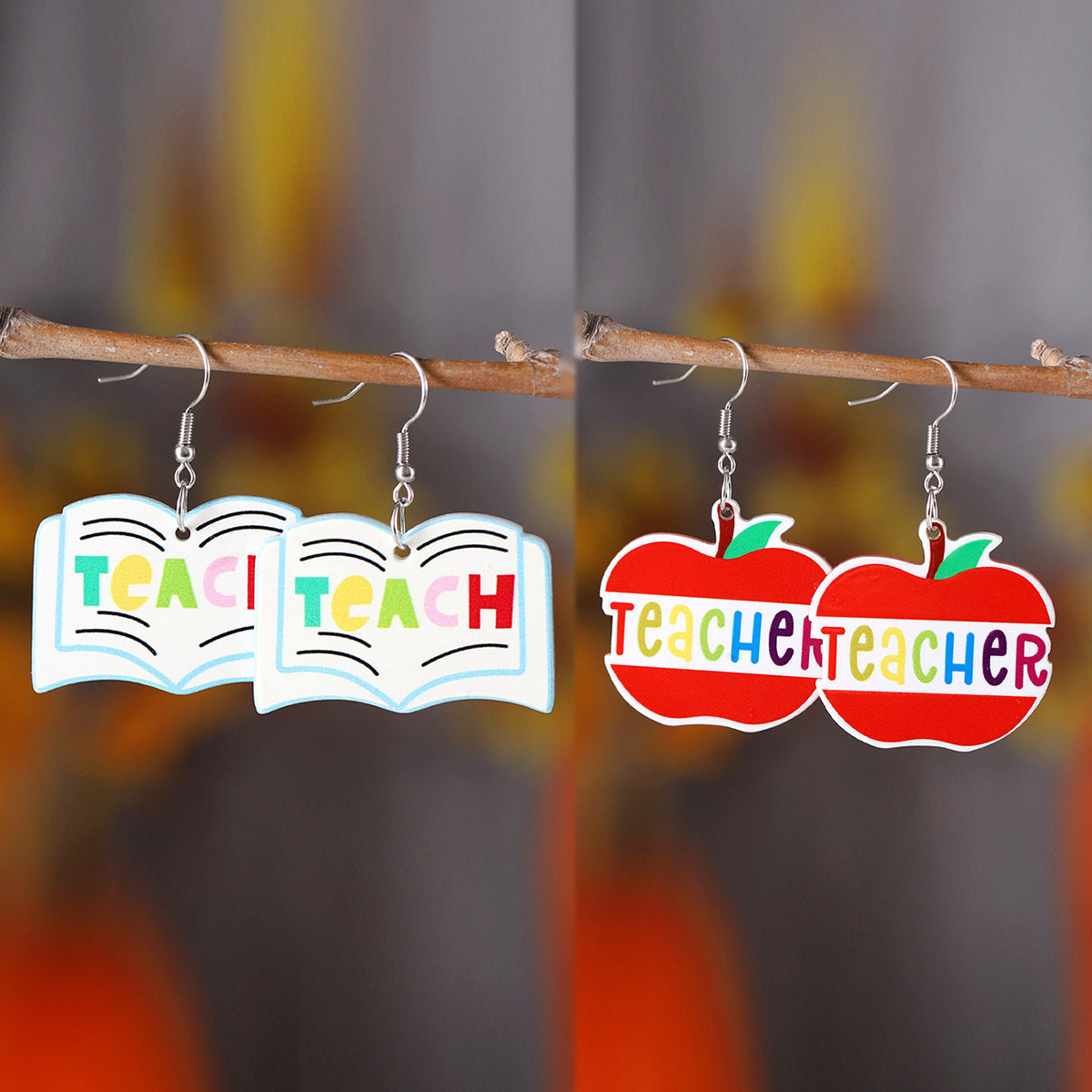 Wholesale New School Season Books Apple Pendant Earrings Back to School Season Acrylic Teachers' Day Graduation Season Earrings
