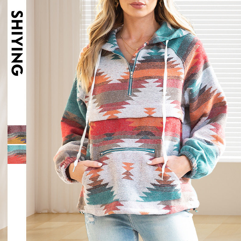 Wholesale Women's Contrasting Printed Long Sleeved Polyester Hoodies