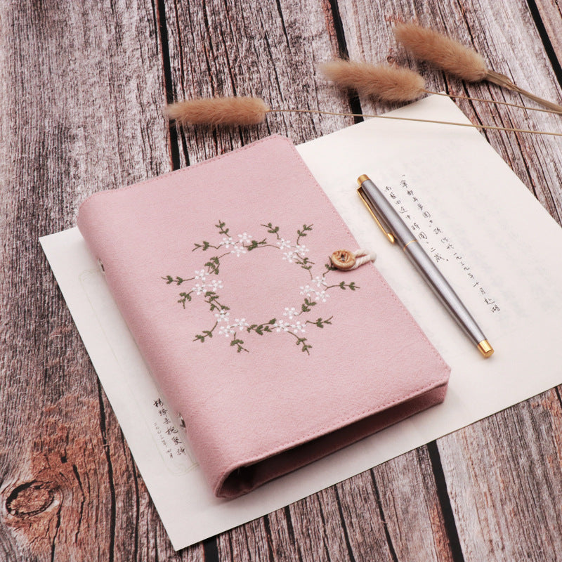 Wholesale Cotton Fabric Embroidered Wreath Binder A5/A6 Literary Notebook