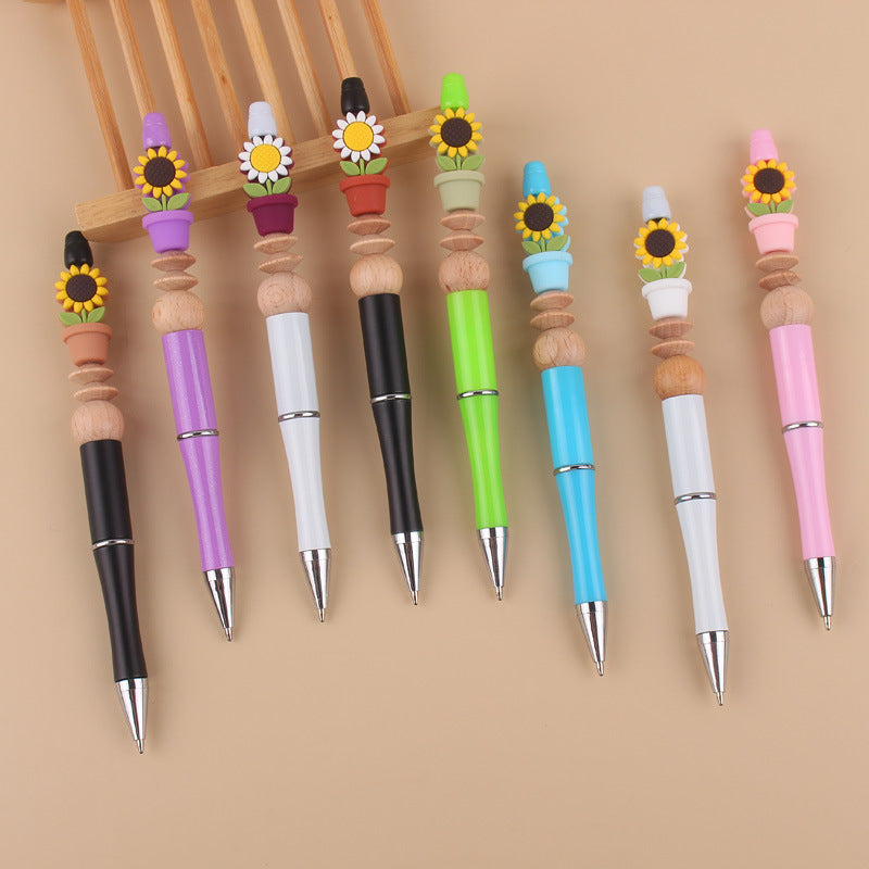Wholesale Handmade Beadable Cartoon Sunflower Silicone Bead Wooden Bead Ballpoint Pen