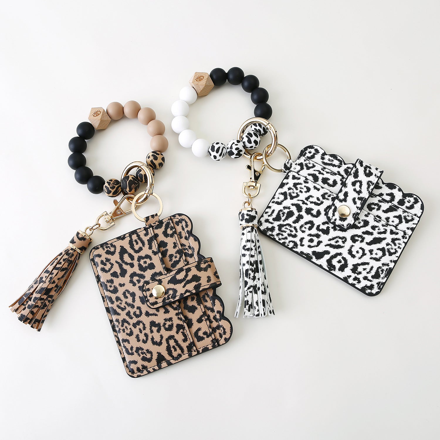 Wholesale Silicone Leopard Print Beaded Wrist Keychain