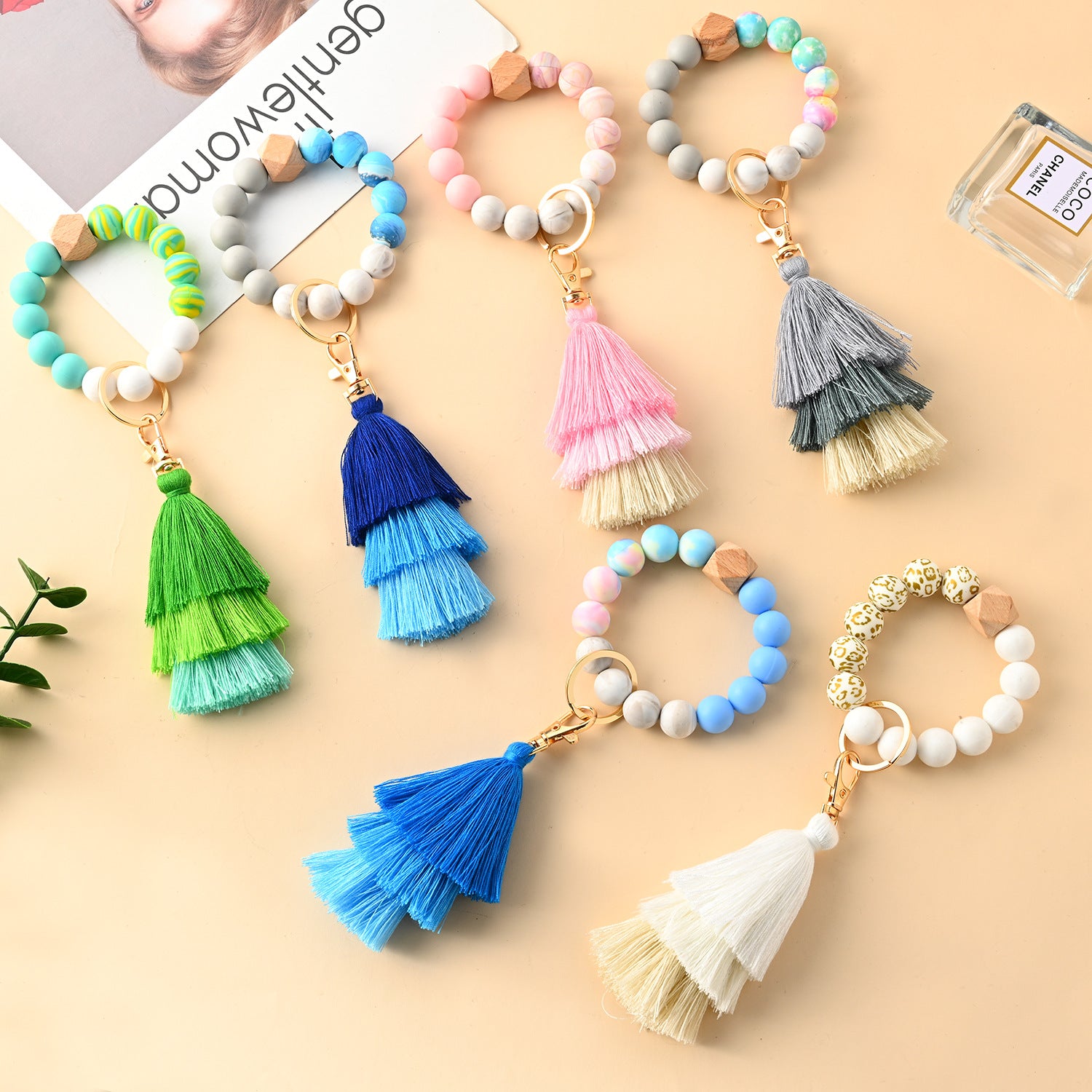 Wholesale Rainbow Wool Ball Cotton Rope Key Chain