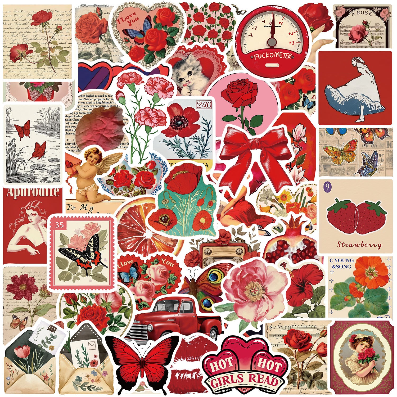 Wholesale 50pcs Red Flower Animal Series Graffiti Stickers