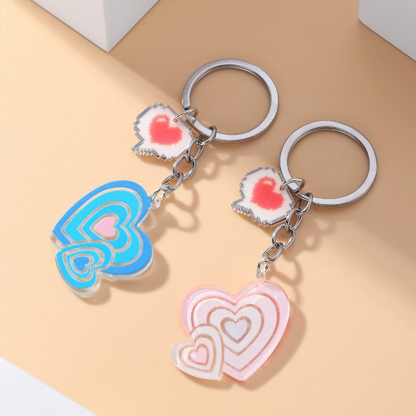 Wholesale Acrylic Pink and Blue Couple Heart-shaped Keychain