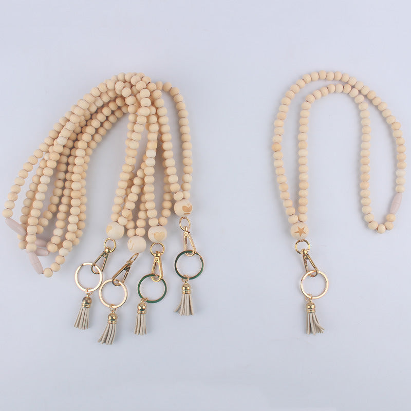 Wholesale Boho Teacher Nurse Badge Wooden Beads Beaded Keychain