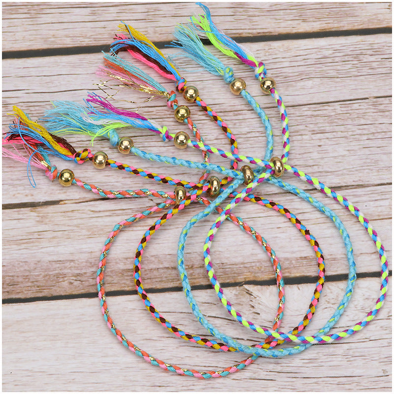 Wholesale Braided Cotton Rope Copper Bead Tassel Bracelet