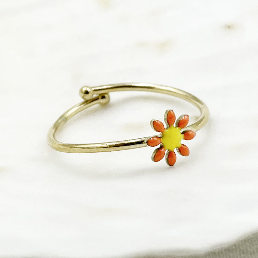 Wholesale Colorful Oil Drip Sunflower Adjustable Titanium Steel Ring