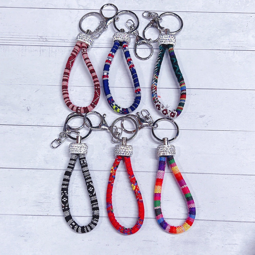 Wholesale Metal Colorful Ethnic Style Cotton Rope Diamond Keychain Lanyard