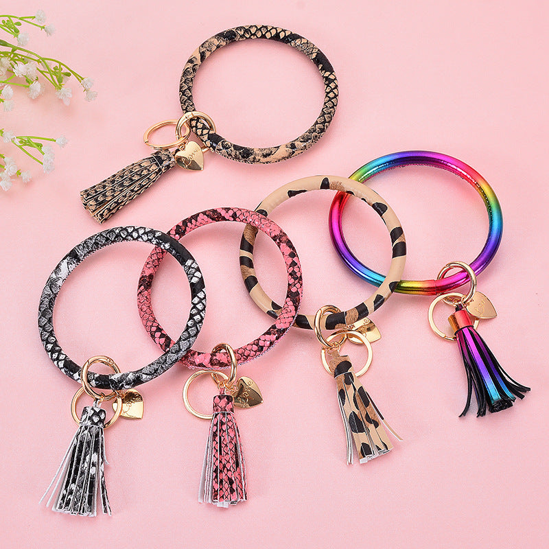 Wholesale PU Leather Bracelet Heart Tassel Pendant Keychains