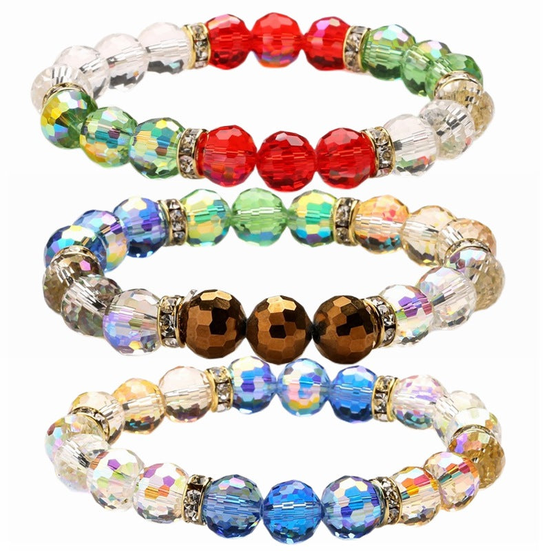 Wholesale Super Flash Round Beads 10MM Crystal Glass Multicolor String Beads Bracelet