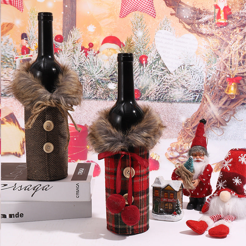 Wholesale Christmas Wine Decoration Set, Wine Bottle Decoration, Striped Plaid Table Ornament