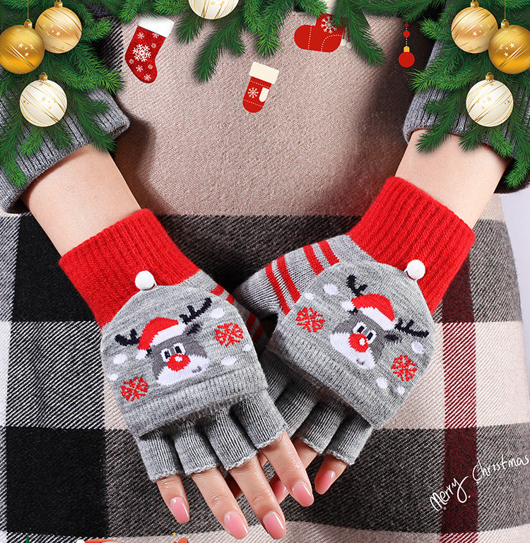 Wholesale Christmas Winter Half Finger Flip-up Cold-proof Warm Knitted Gloves