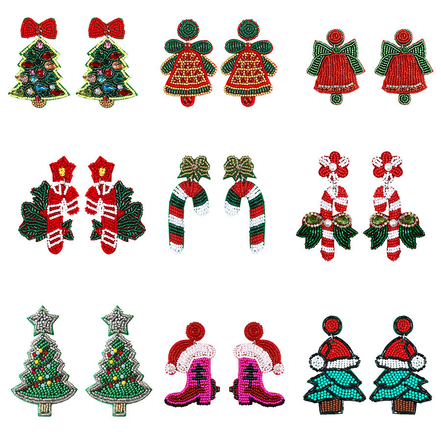 Wholesale Christmas Bells Candy Canes Sweet and Cute Rice Beads Hand-woven Earrings