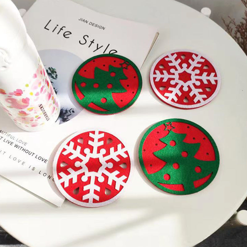 Wholesale Snowflake Christmas Tree Felt Coasters