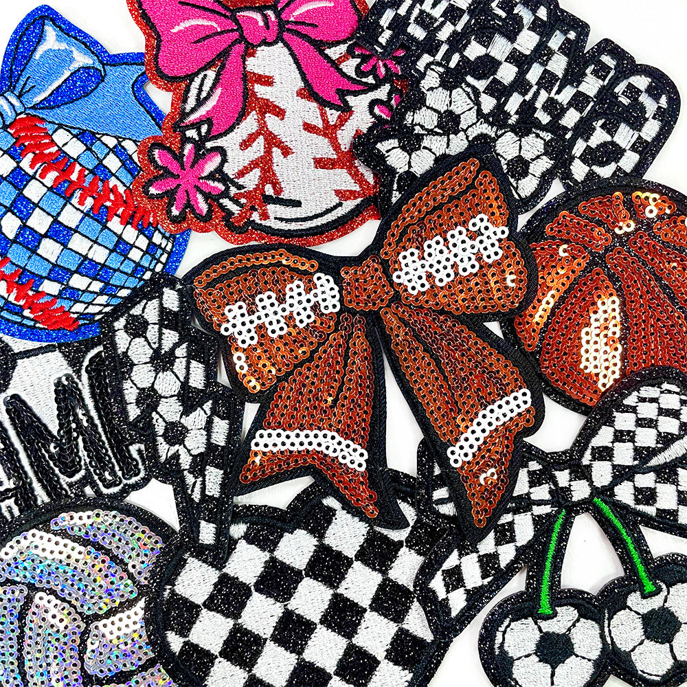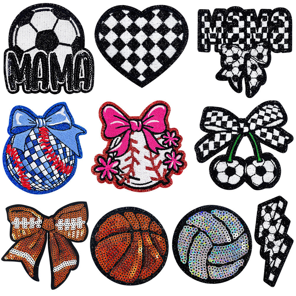 Wholesale Baseball volleyball ball bow sequin embroidery DIY Patches