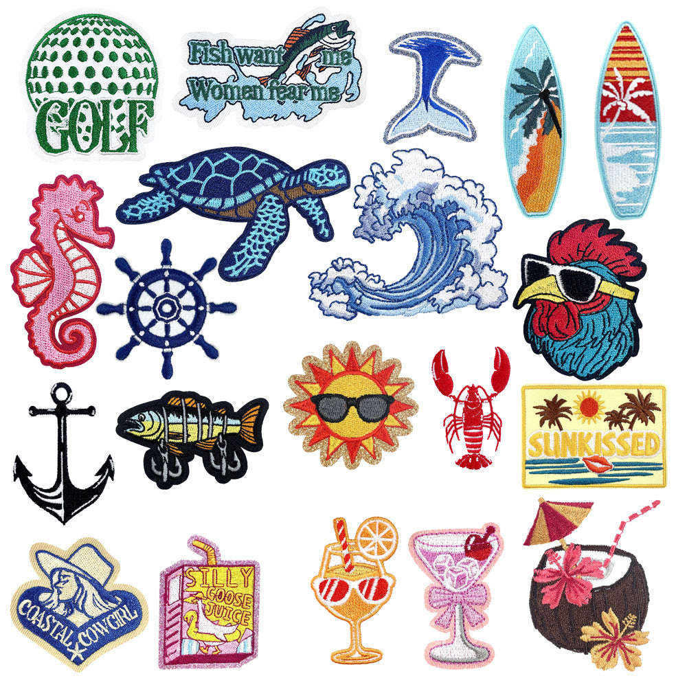 Wholesale Summer Beach Outdoor Seahorse Planet Surfboard Embroidery DIY Patches