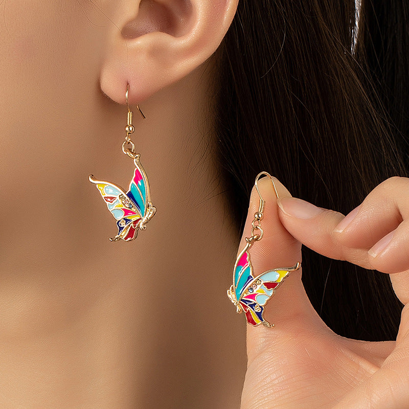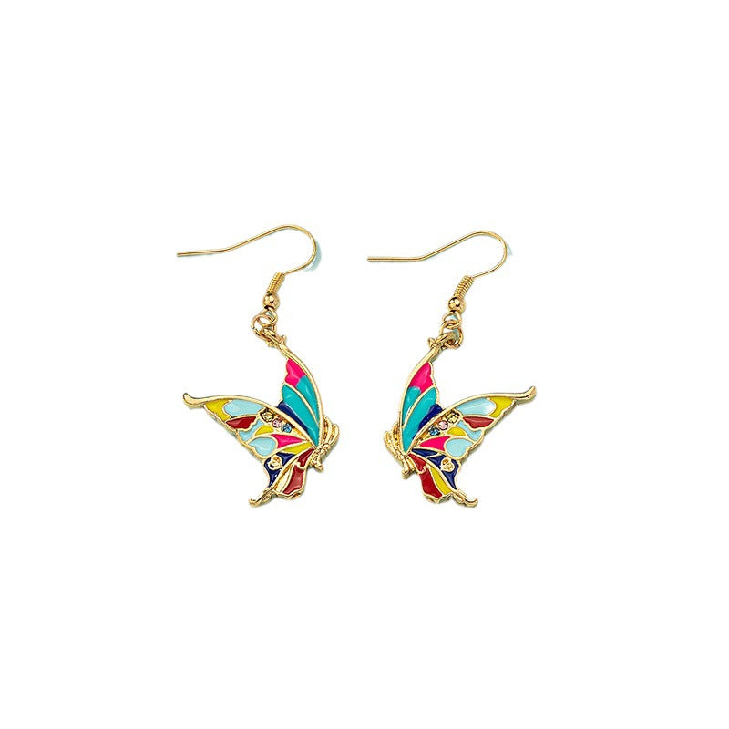 Wholesale Colorful Oil Drop Alloy Butterfly Earrings