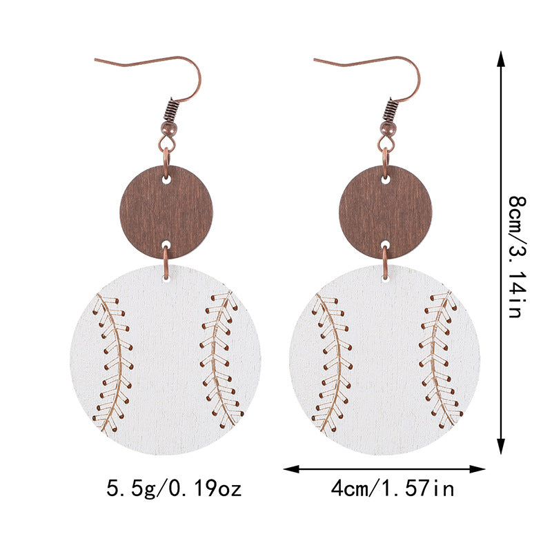 Wholesale Light Wood Chip Sports Style Baseball Pattern Earrings