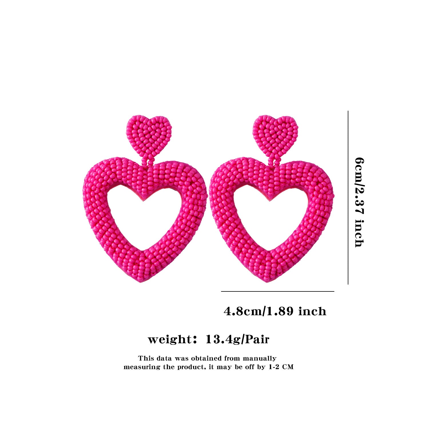 Wholesale Valentine's Day Handwoven Heart Shape Rice Beads Red Earrings