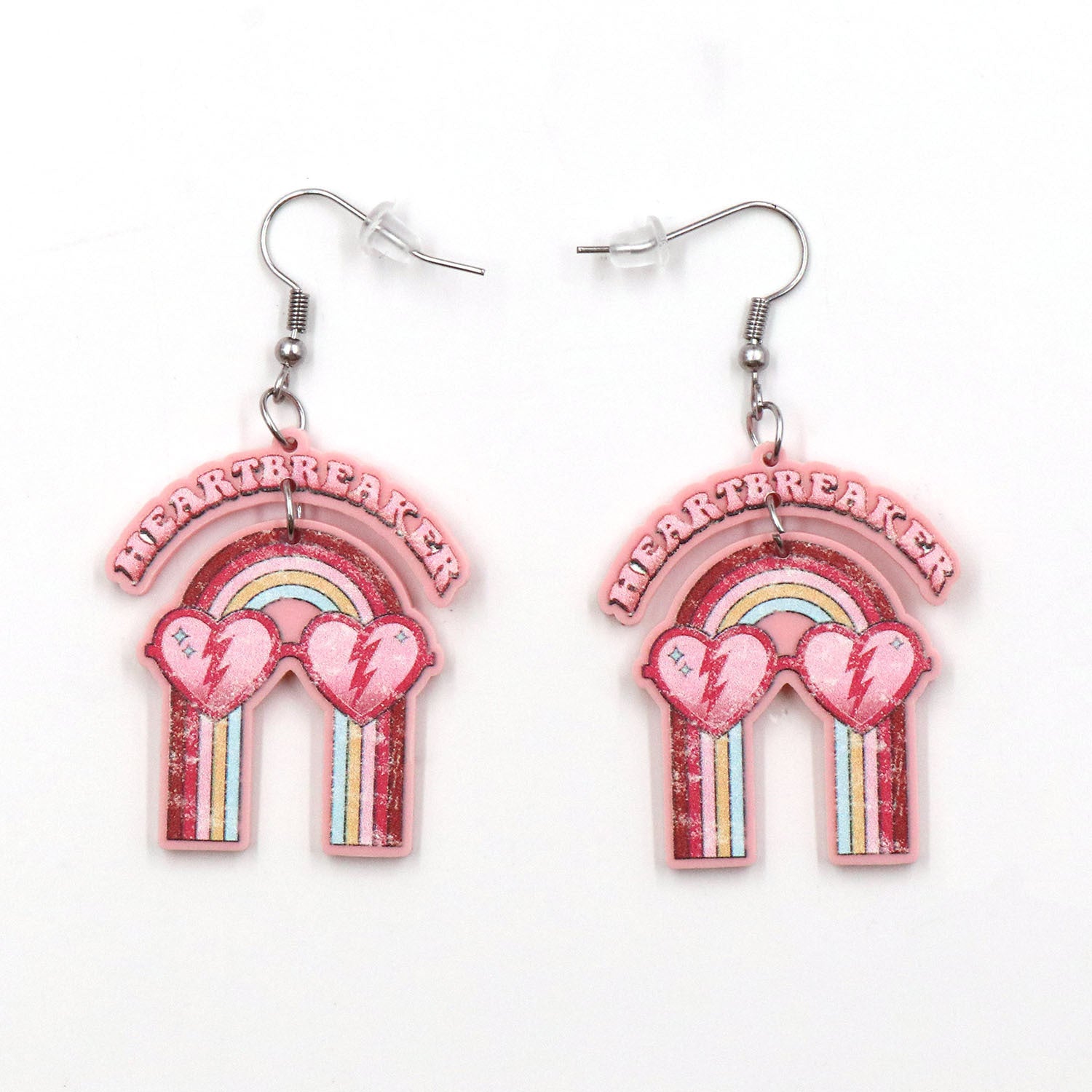 Wholesale Valentine's Day Rainbow Letters Acrylic Earrings
