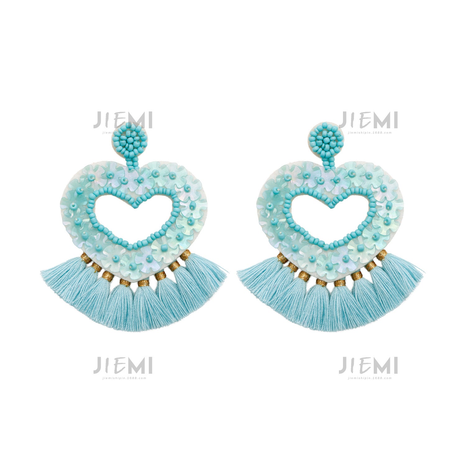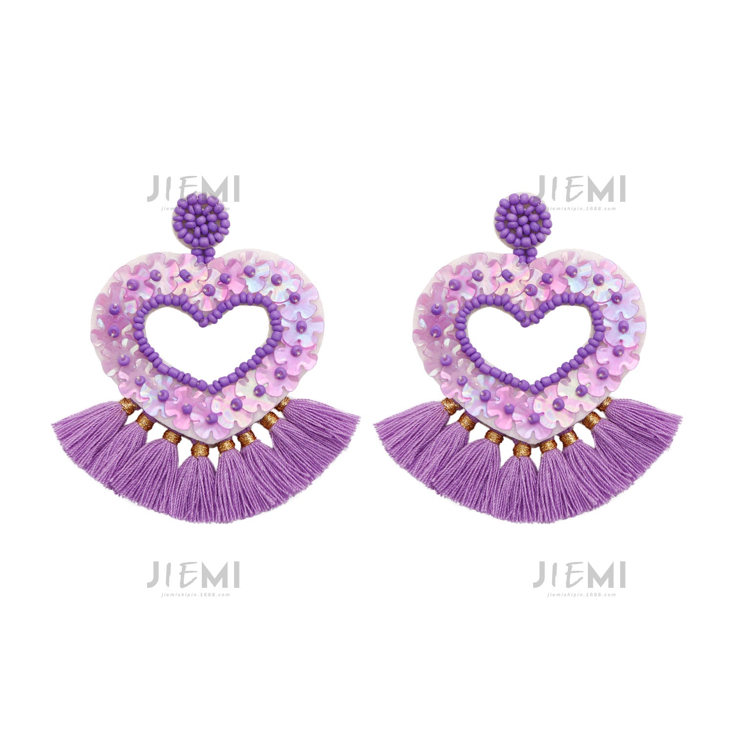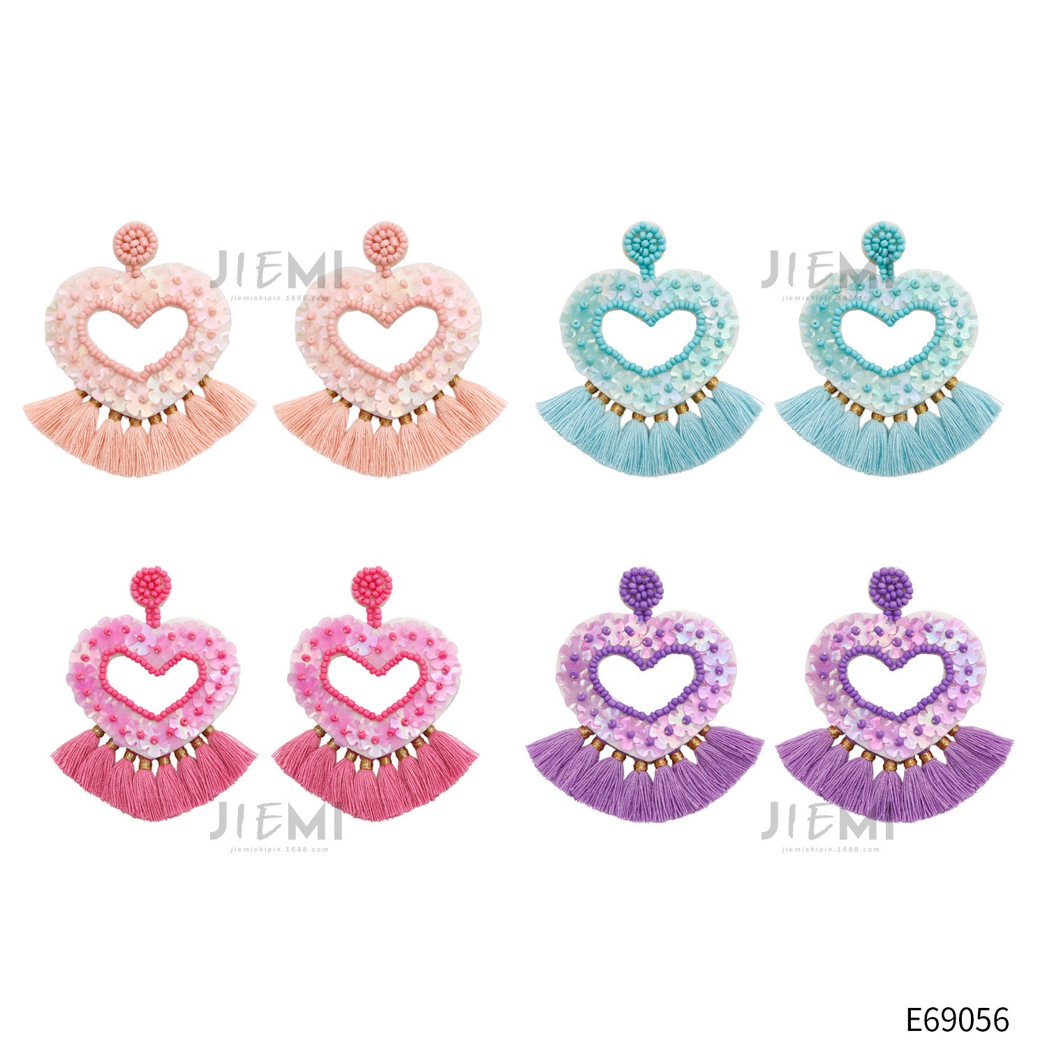 Wholesale Valentine's Day Sequins, Love Tassels, Rice Bead Earrings