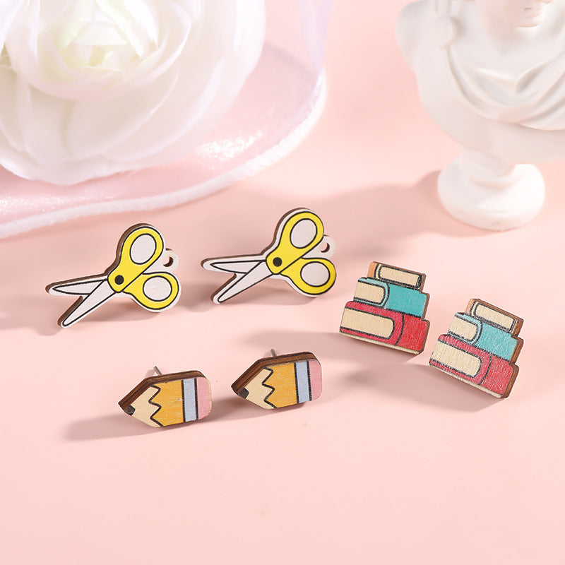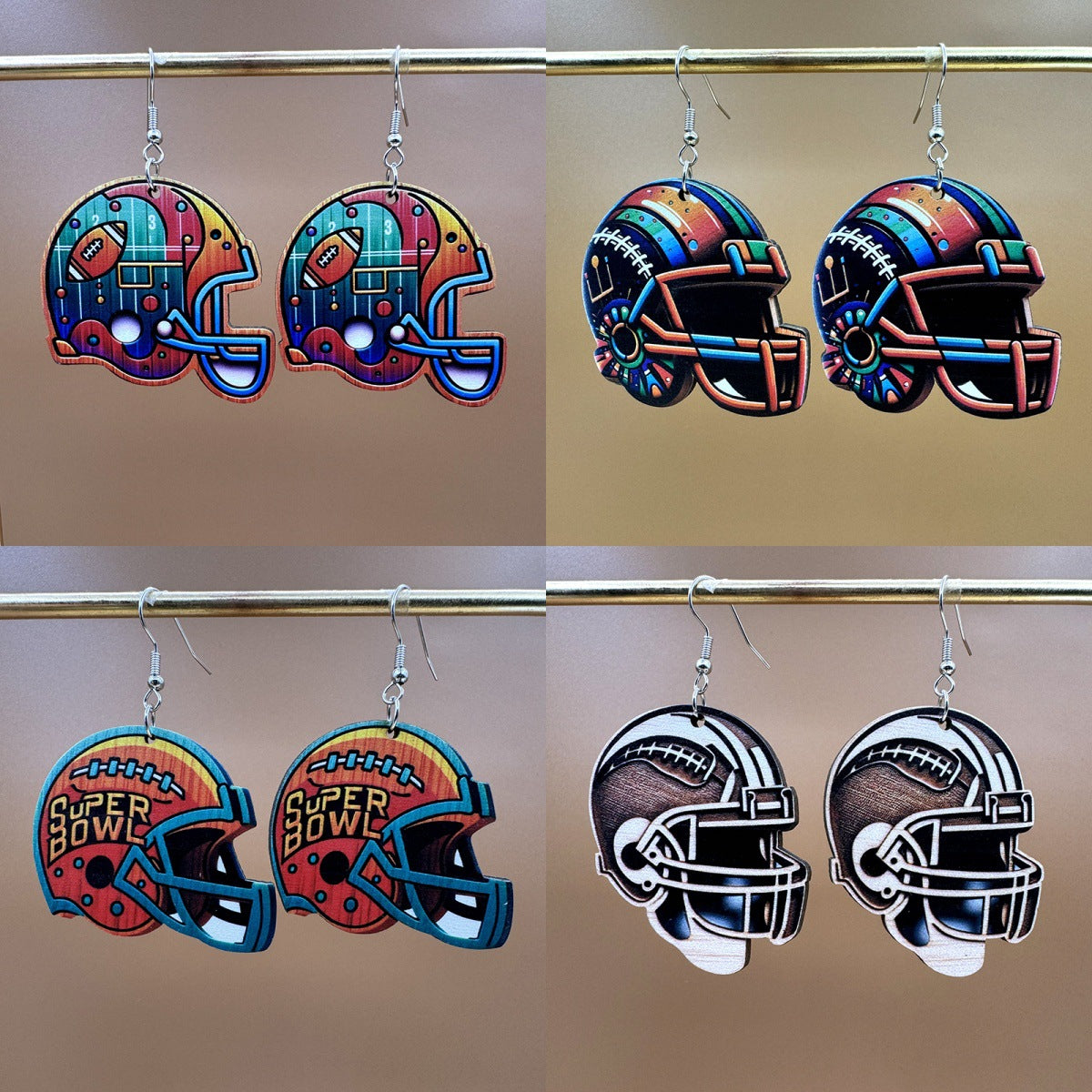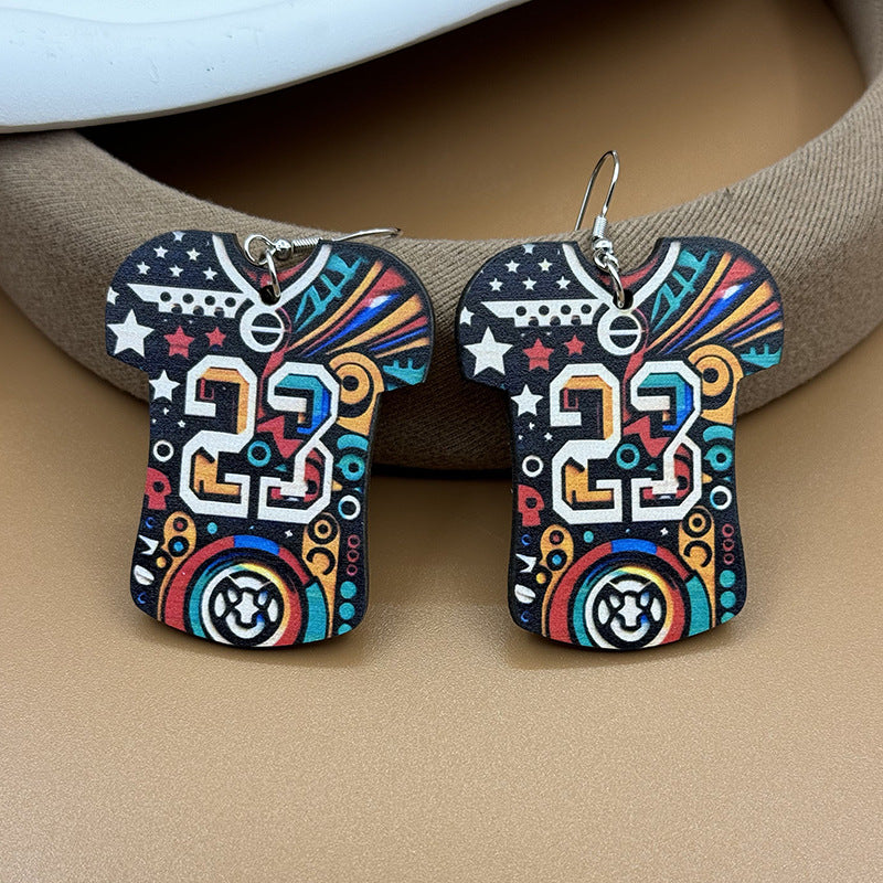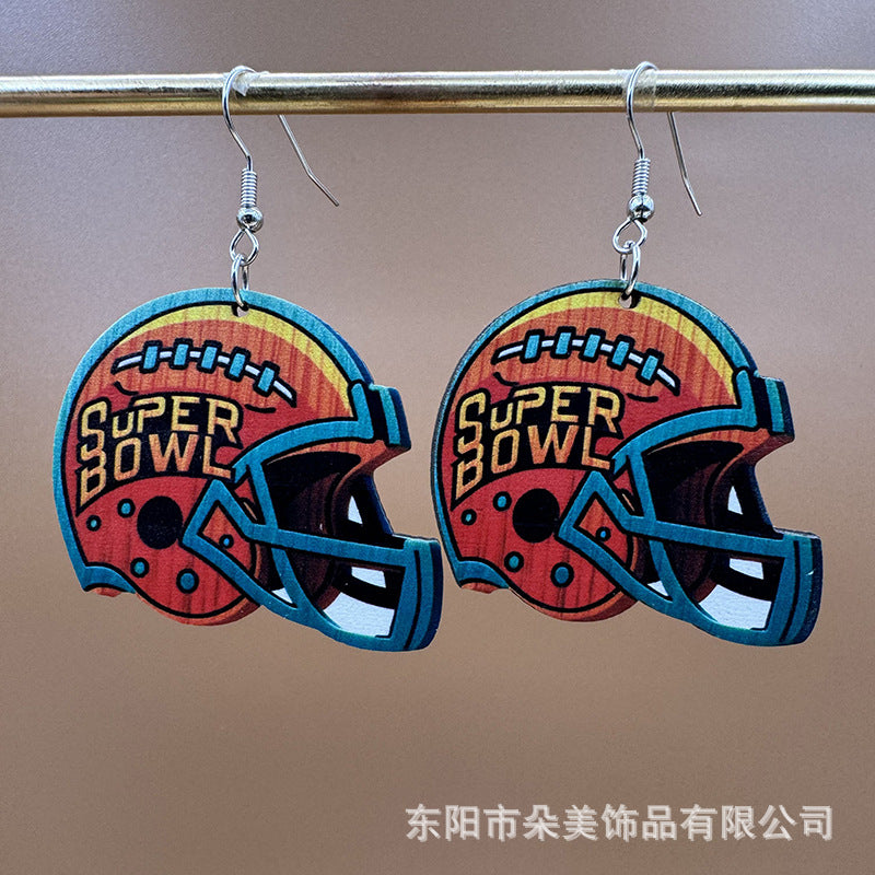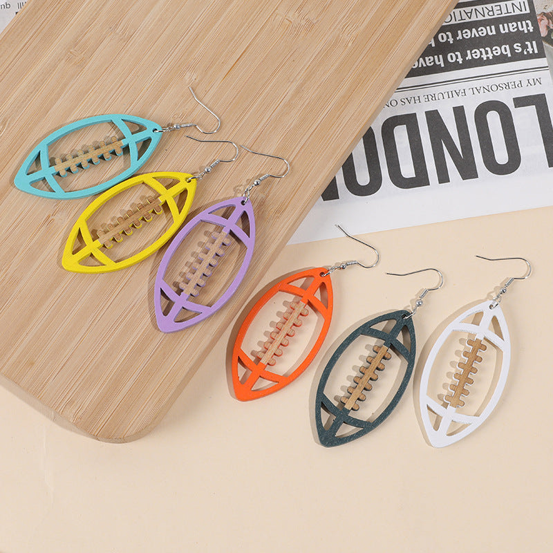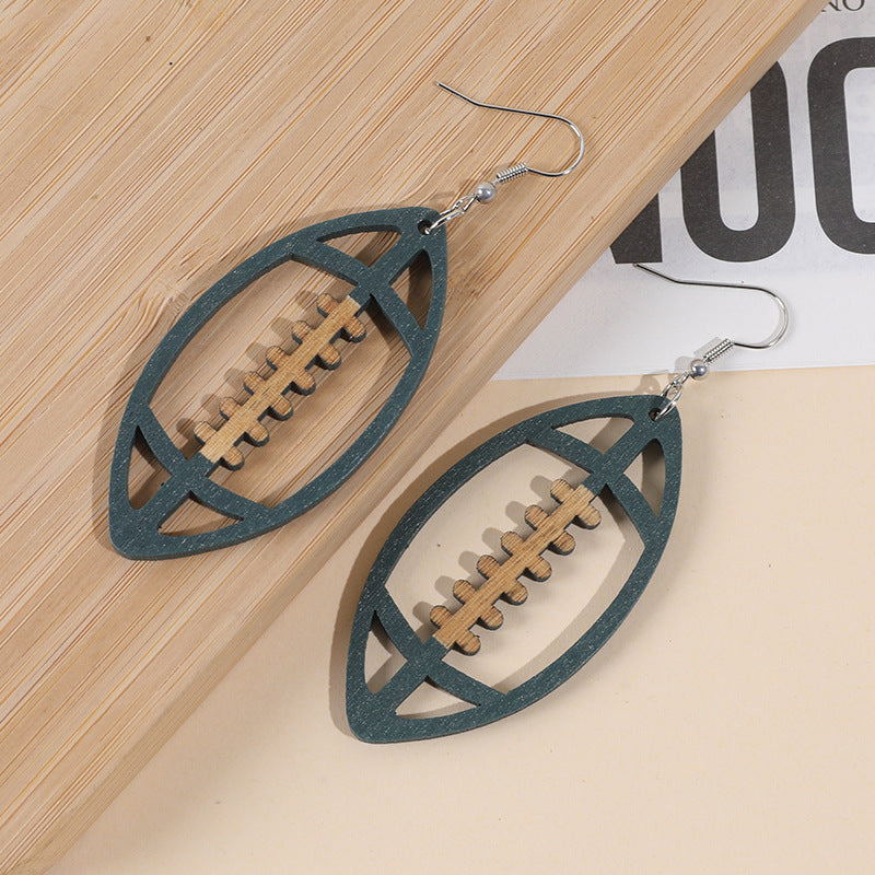 Wholesale Event Sports Accessories Heart Shaped Ball Wooden Earrings