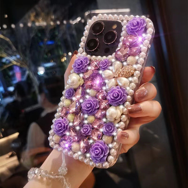 Wholesale Pearl Border Full Diamond Flower Phone Protective Cases